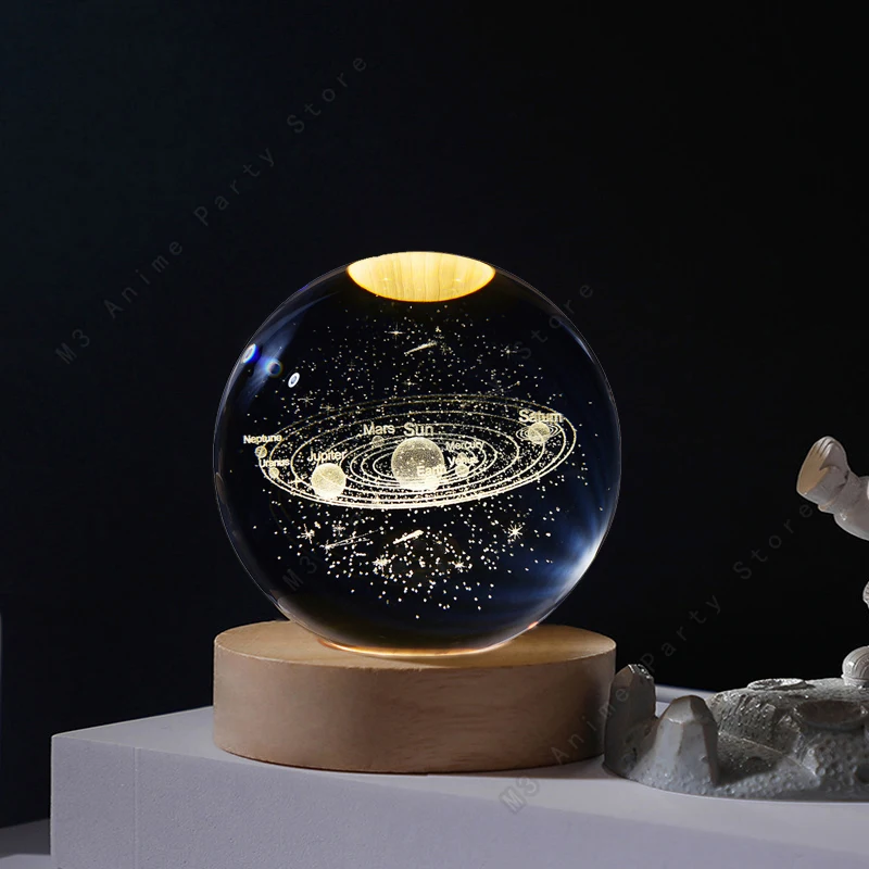 Bola de cristal 3D Luminária noturna combina arte, delicadeza e tecnologia 3D, trazendo um visual único para quartos, escritórios e espaços de decoração. Com gravação a laser ultra detalhada e base de madeira natural, ela ilumina o ambiente com um brilho suave e elegante.